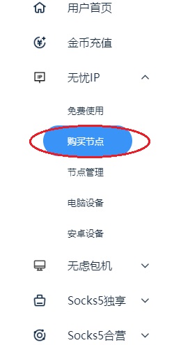 二 . 充值完成后 点登陆后台后 点击 无忧ip 购买节点