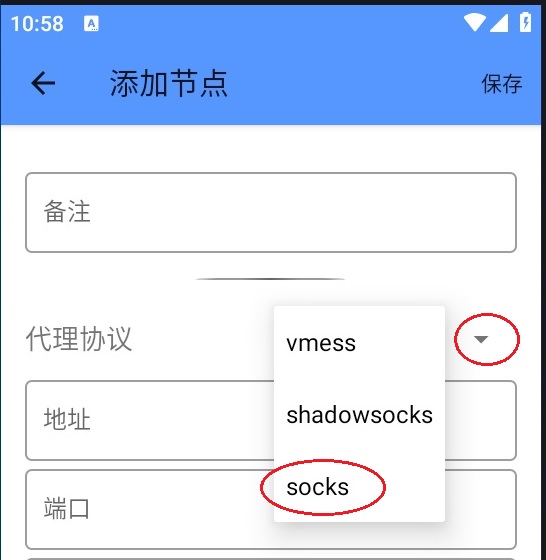 四. 点代理协议右侧 选 socks