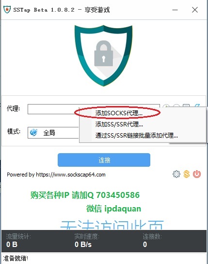 四. 选中保存好的IP 如果您用的是国内IP 那选择全局或浏览器 然后直接点下方的连接 就可以了.