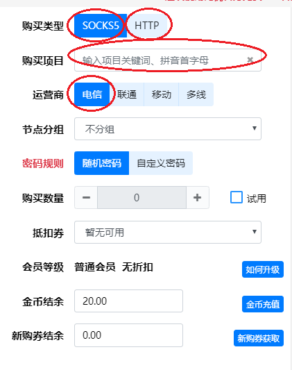 二.购买类型 需要SK5就选 SOCKS5 需要 HTTP 就选 HTTP