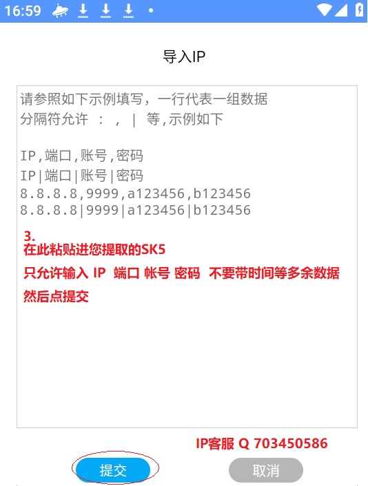 二.点IP管理 导入IP.只导入 IP 端口 帐号 密码,不要带时间.也就是类似 30.111.67.44|11337|dvr|sfx 这种形式 点提交 完成.