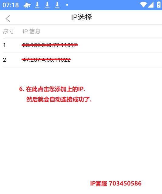 三. 点击选择IP , 如果出现一个要求确定的选项 ,请点击确定 , 选中您要连接的IP,然后就连接成功了.