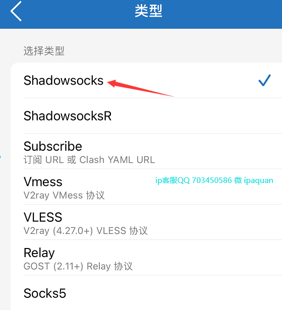 2. 类型选Shadowsocks